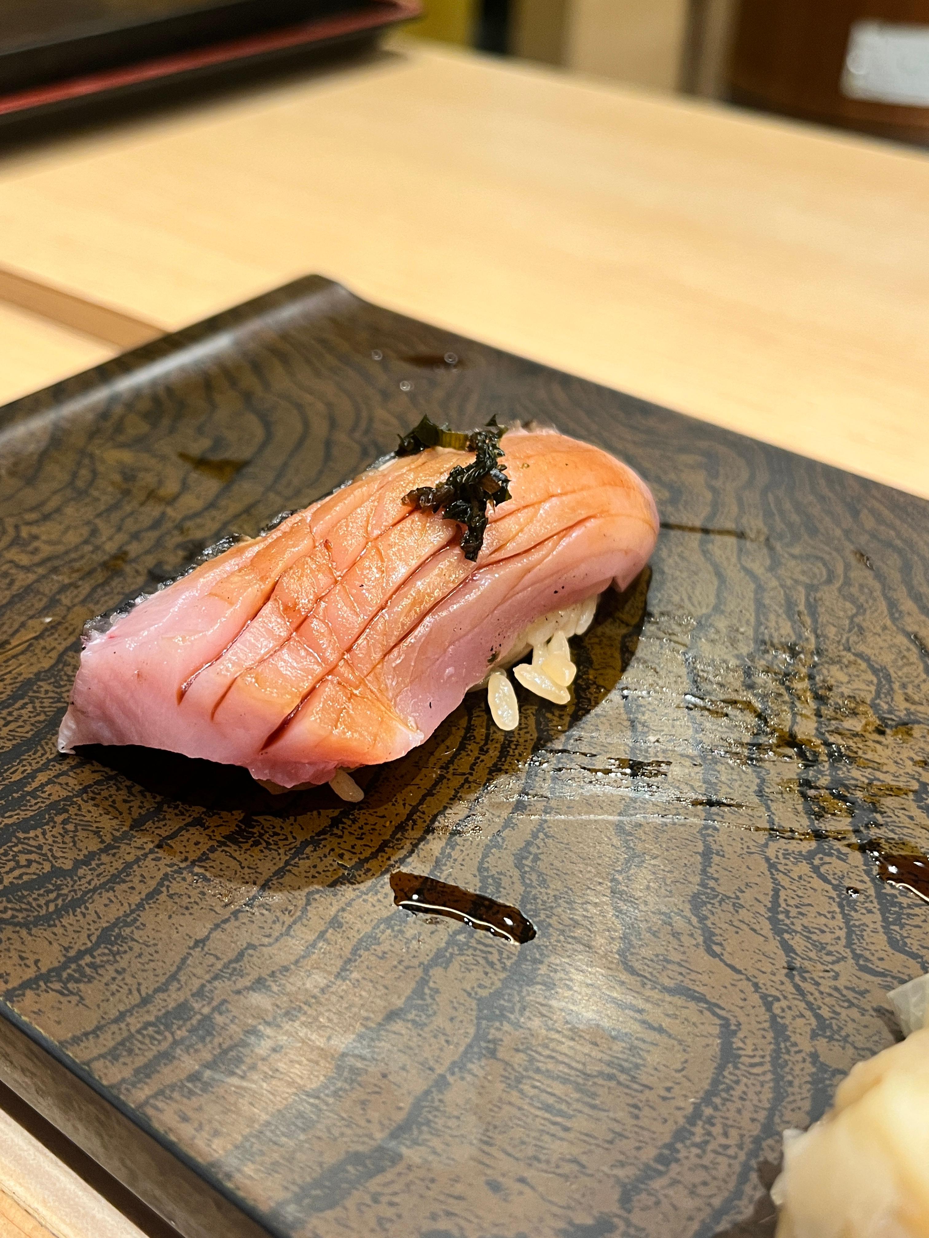쉐프의 추천 스시는 참치였는데 맛있고 가격도 적당해서 여러개 먹었다. 하이엔드급과 같은 재료를 쓴다니 가장 비싼 오도로(참치 대뱃살 부위)를 먹어봤는데 아..... 그 순간은 영원 같았다. 목으로 넘어갈까봐 씹기가 싫었던 기억이 난다.